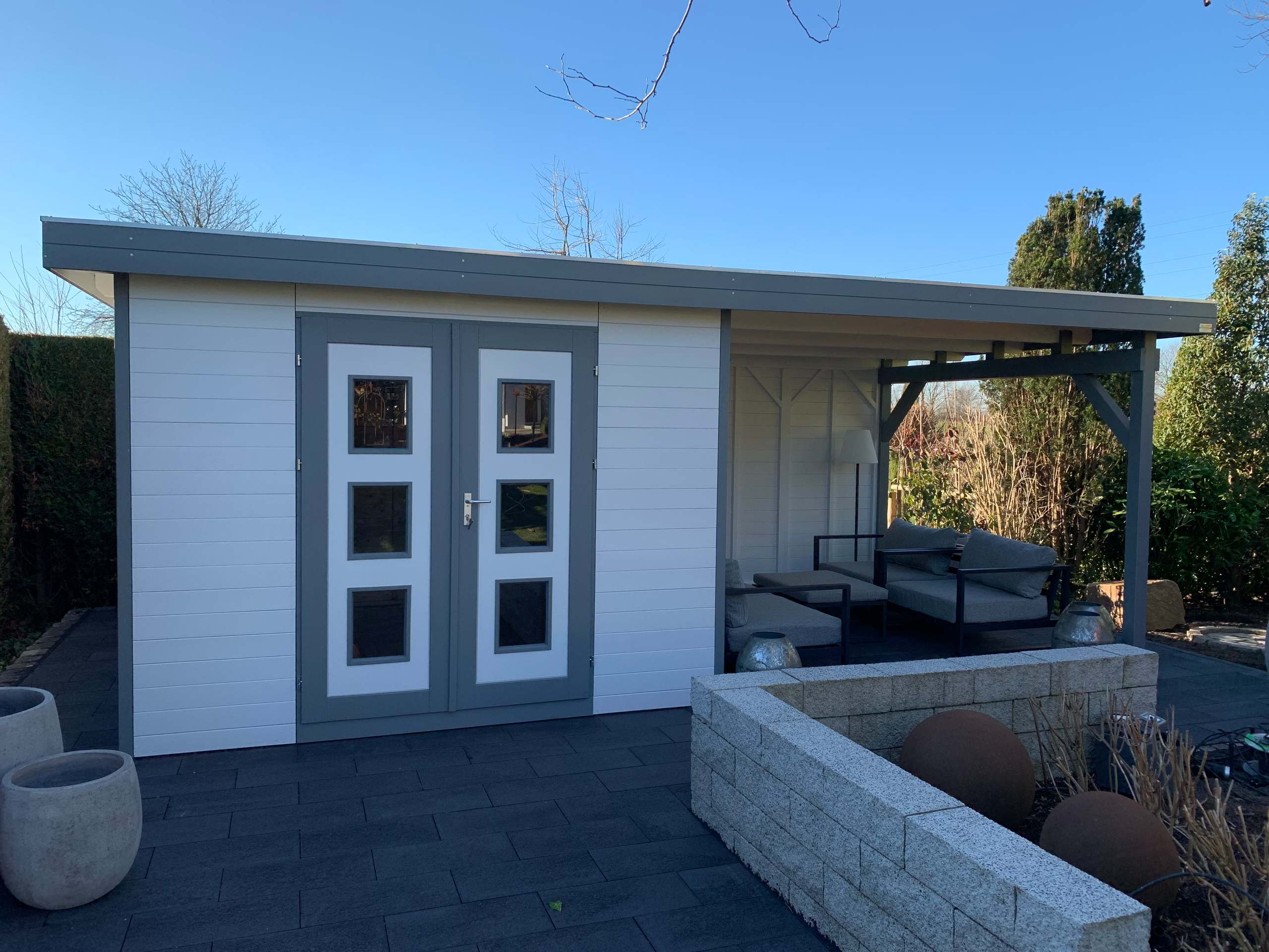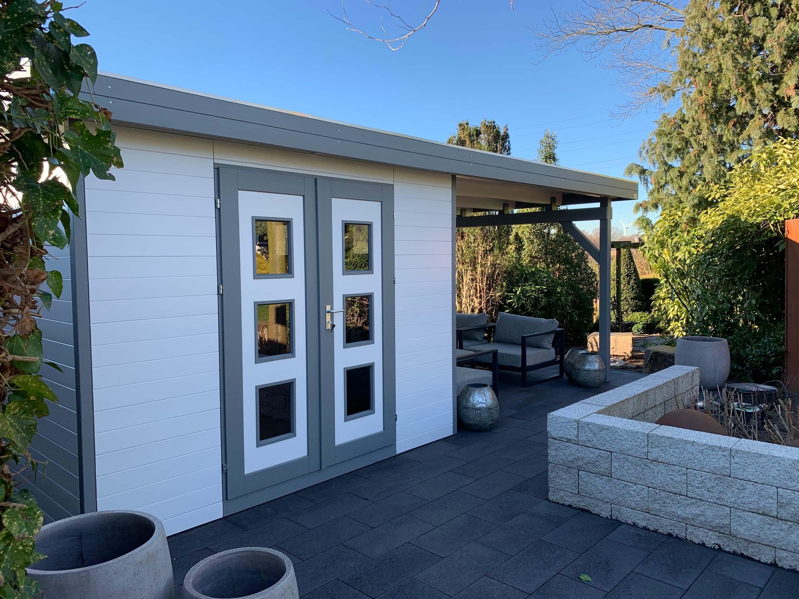 Gartenhaus mit Terrassenüberdachung