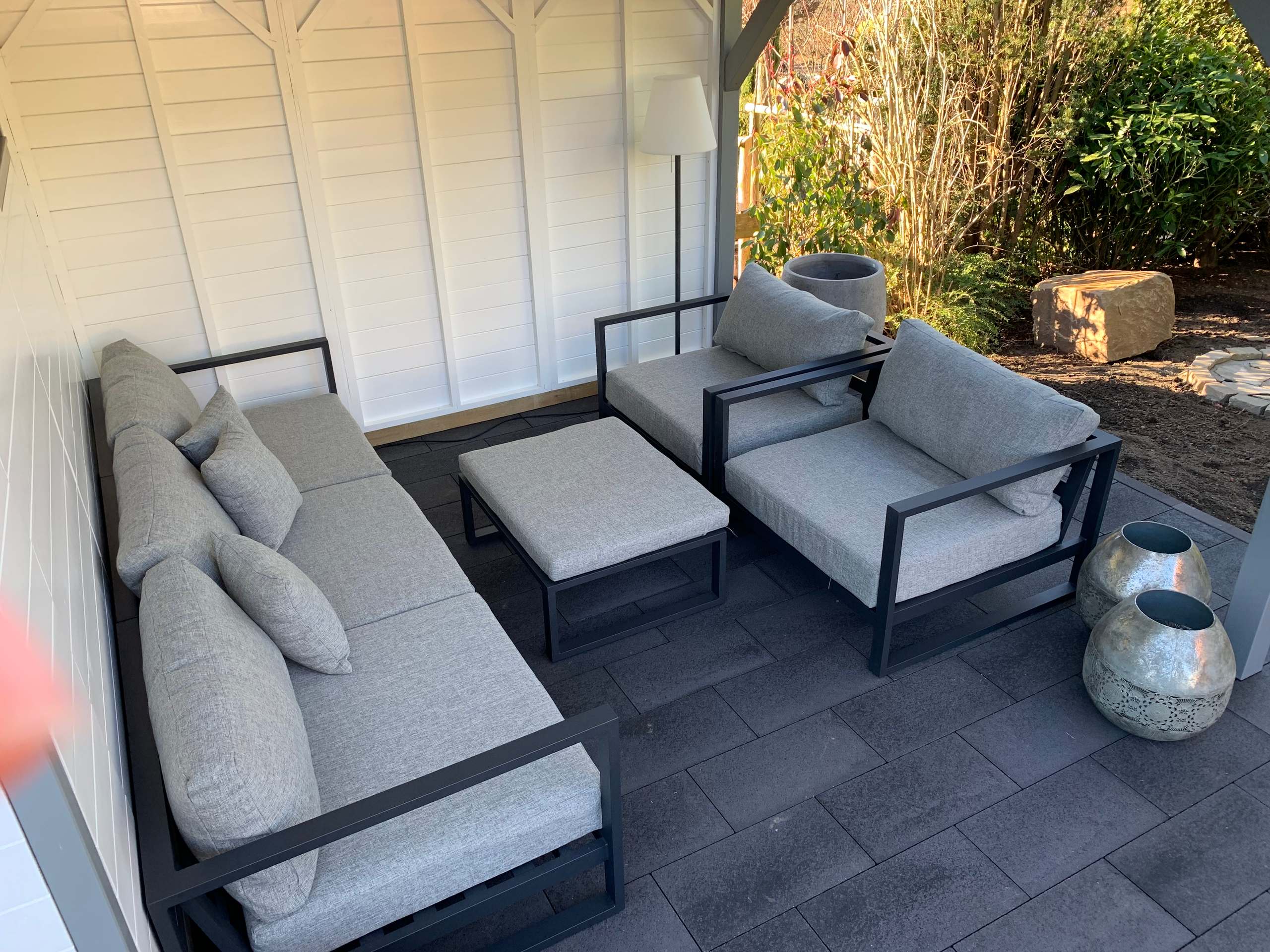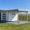 Die stabile Konstruktion und die Verwendung hochwertiger, wetterbeständiger Materialien gewährleisten eine hohe Langlebigkeit und Standfestigkeit. Das Gartenhaus eignet sich ideal zur Aufbewahrung von Gartengeräten, Möbeln oder Werkzeugen, während die überdachte Terrasse flexibel als Sitzplatz, Abstellfläche oder Übergangsbereich genutzt werden kann.