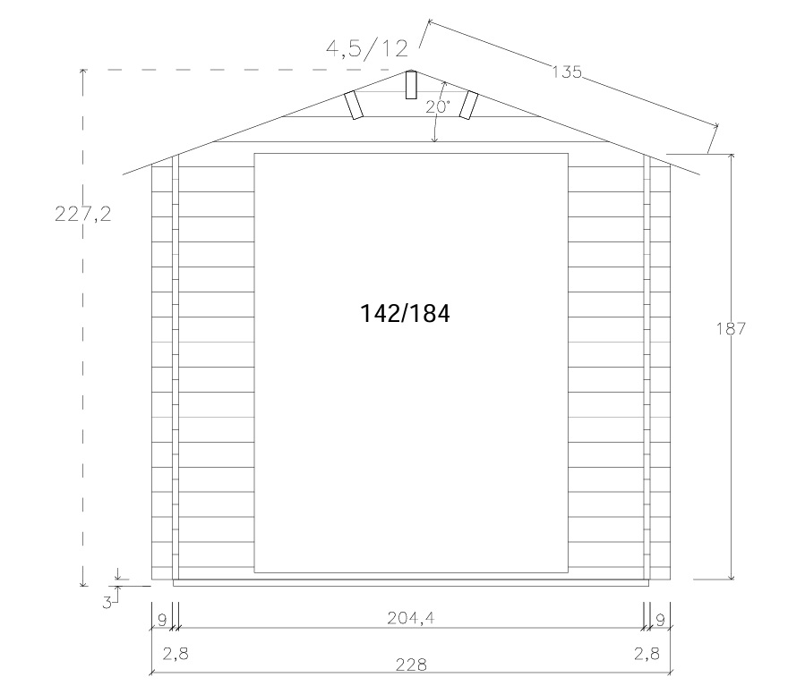 – gerade Giebelbretter, Dachschalung 19mm-Holzbrettern mit Nut u. Feder, aus Nordeuropäischer Fichte.