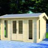 Das Gartenhaus ist aus hochwertigem Fichtenholz gefertigt, das nicht nur besonders robust und witterungsbeständig ist, sondern auch eine natürliche Optik und eine angenehme Haptik bietet. Das Gartenhaus ist zudem mit einer praktischen Doppeltür und Lichtbändern ausgestattet, die für ausreichend Licht im Inneren sorgen.