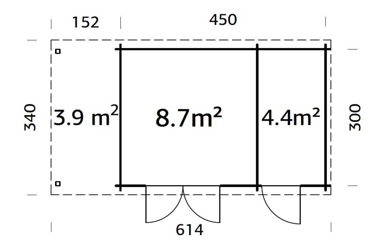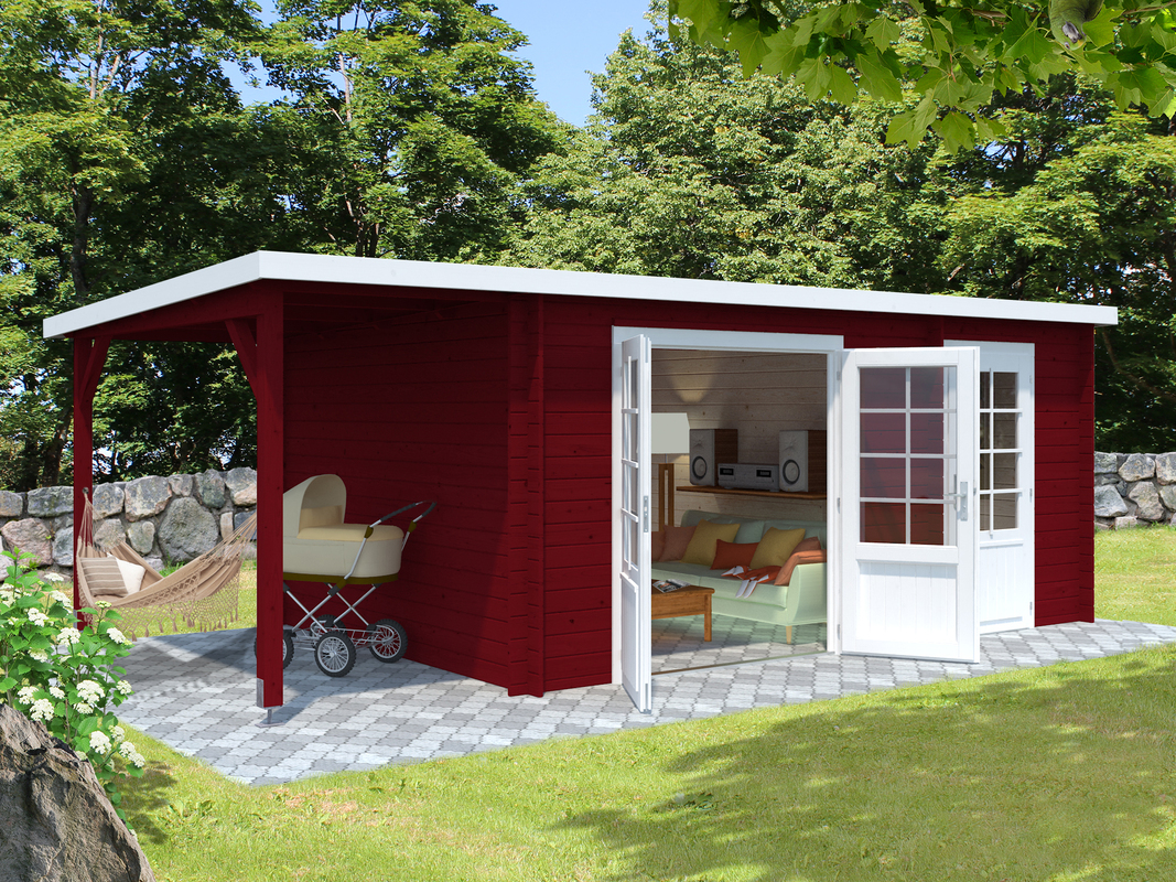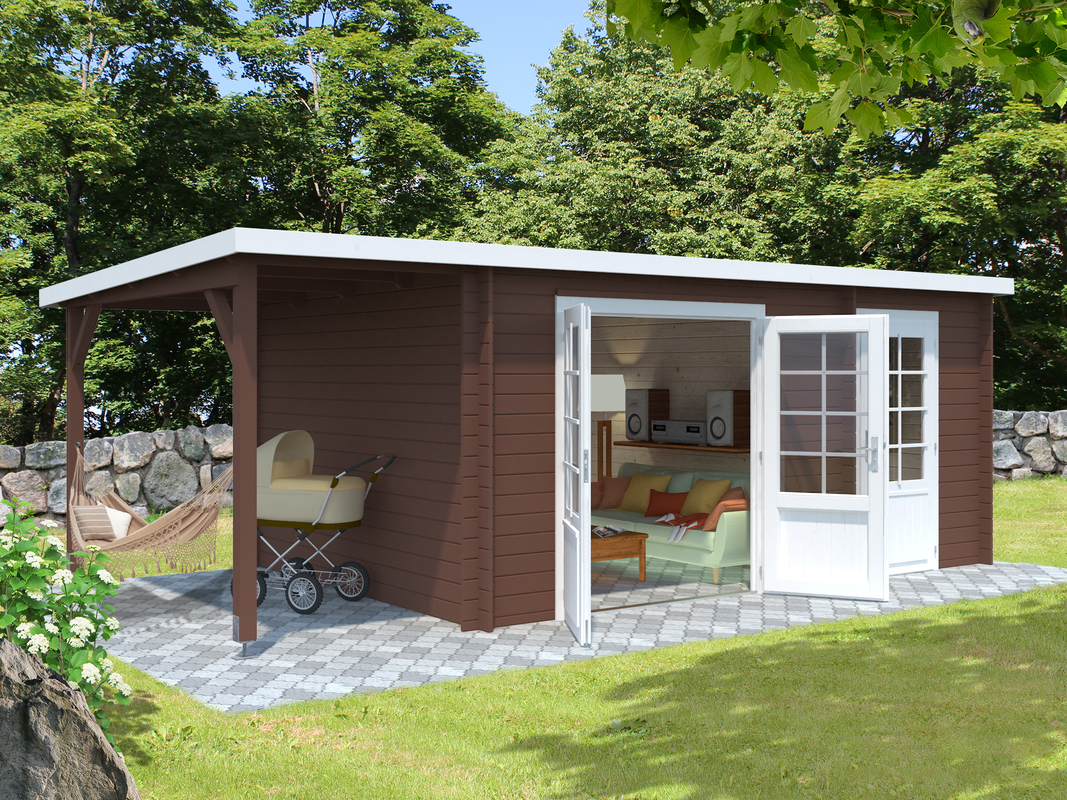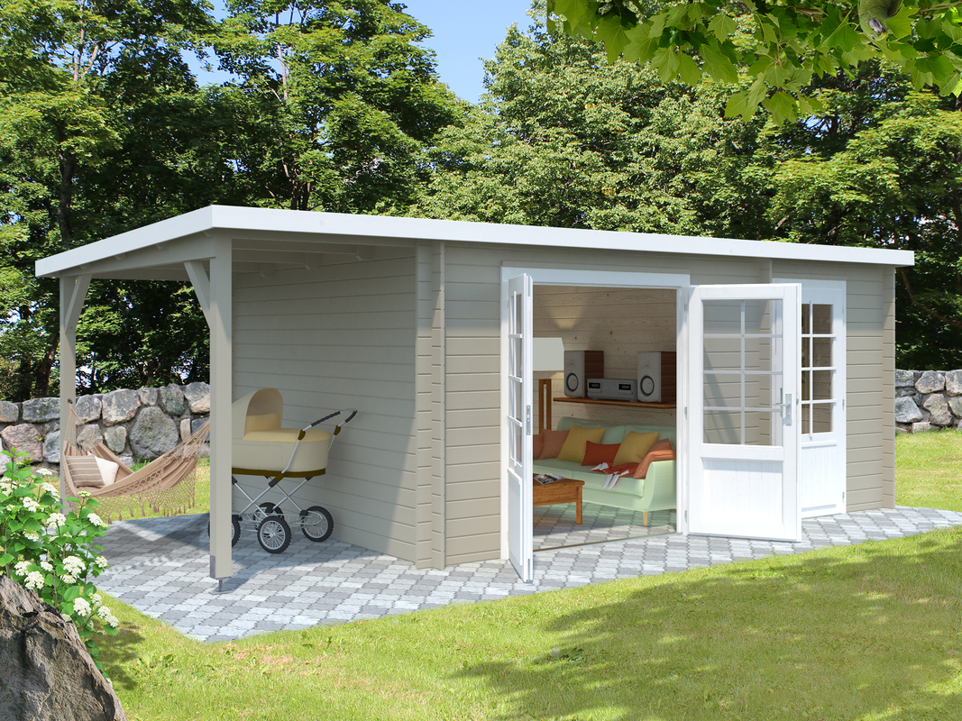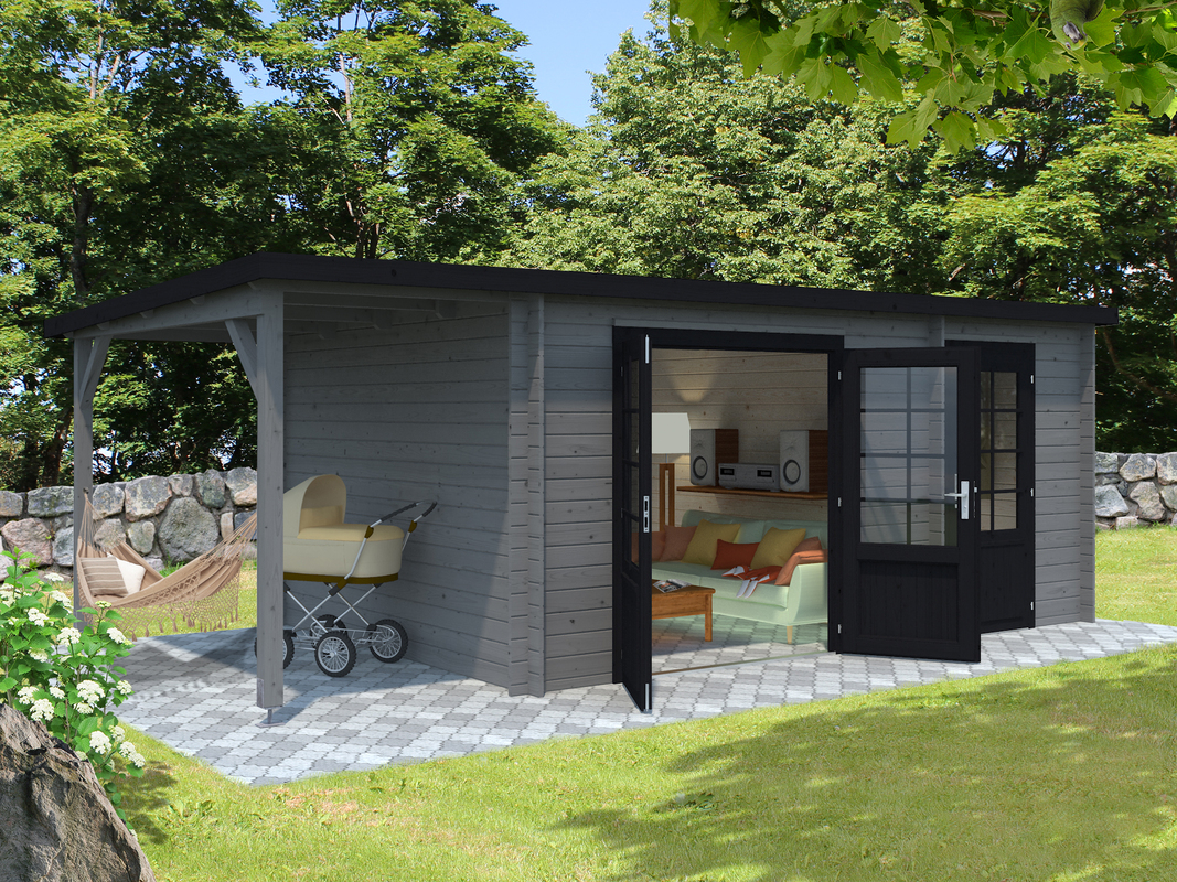Das Gartenhaus Ella vereint praktische Funktionalität mit einem Hauch von Eleganz. Sein Design mit dem markanten Giebel macht es zu einem attraktiven Mittelpunkt in jedem Garten. Die großzügigen Fenster lassen viel Licht ins Innere und schaffen eine einladende Atmosphäre. Der integrierte Unterstand erweitert den Nutzraum und bietet Schutz für Ihre Gartenmöbel oder Geräte. Die Doppeltüren sorgen für einen bequemen Zugang. Mit seiner robusten Bauweise und dem schrägen Dach, das den Niederschlag effektiv abführt, ist das Gartenhaus Ella eine langlebige und stilvolle Ergänzung für Ihren Außenbereich.