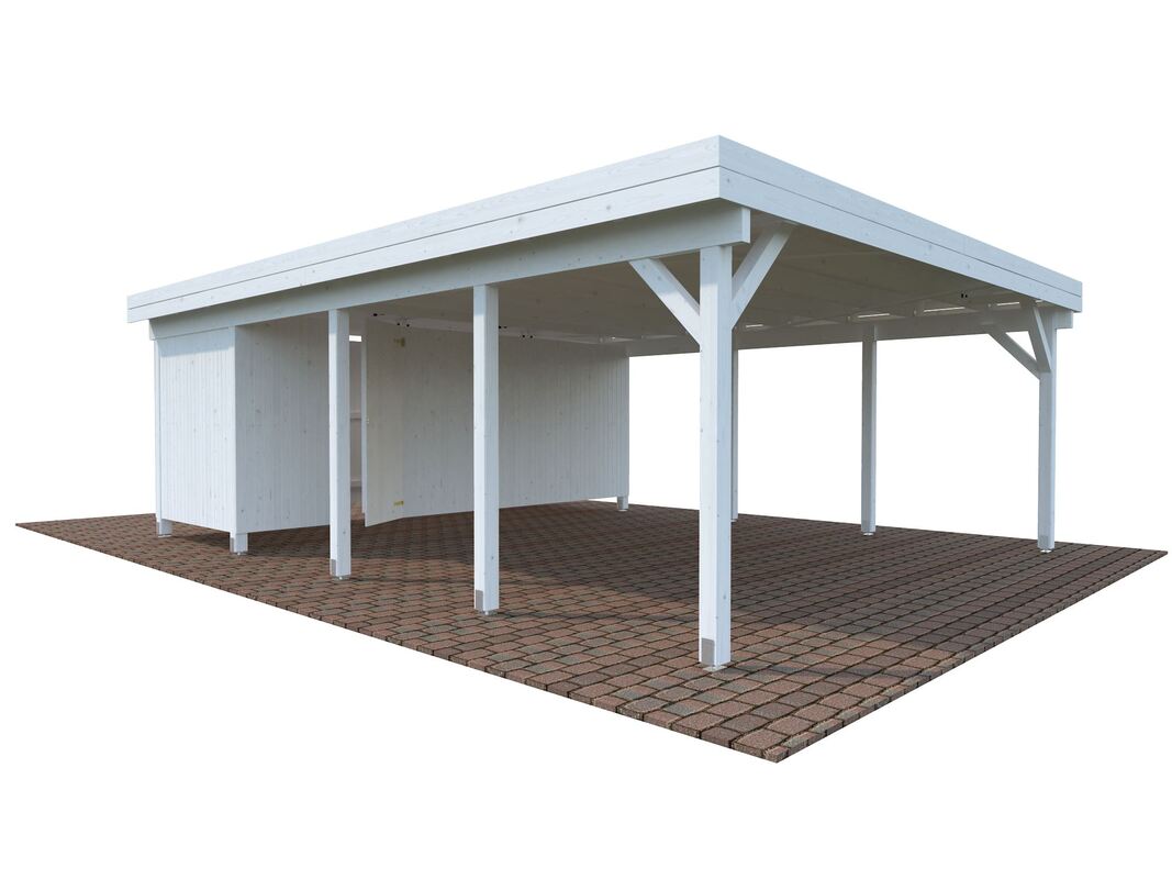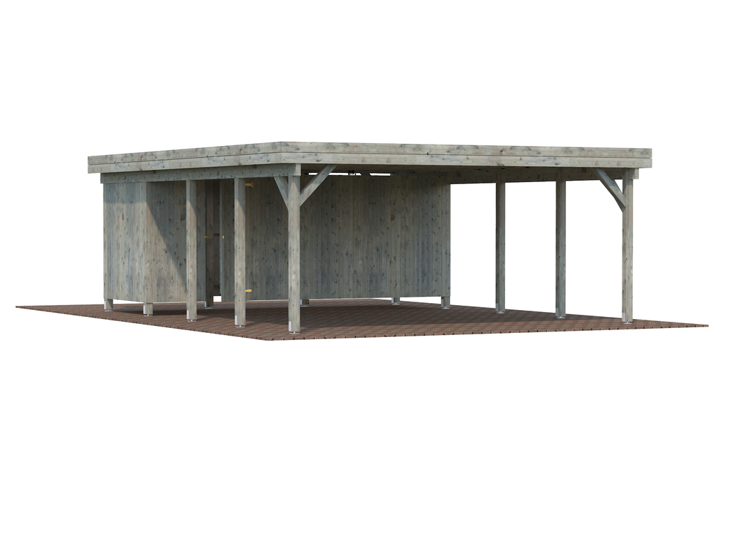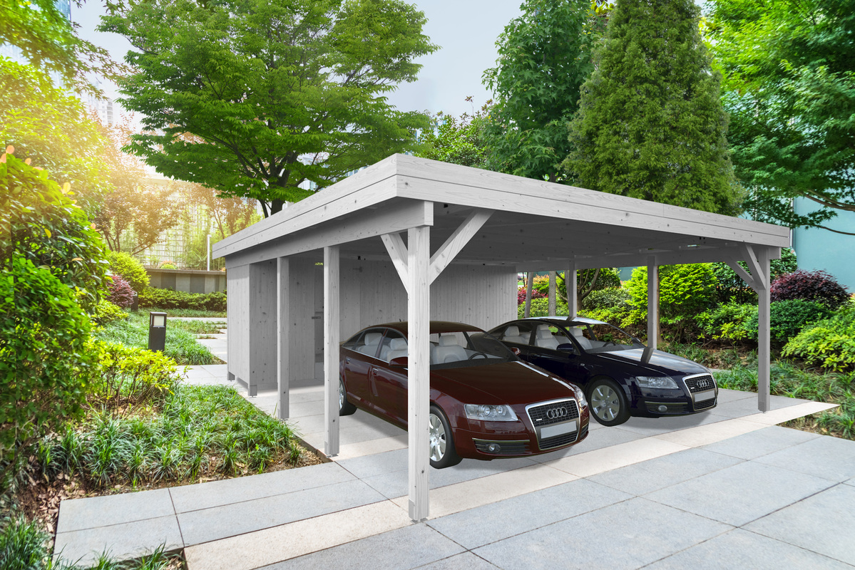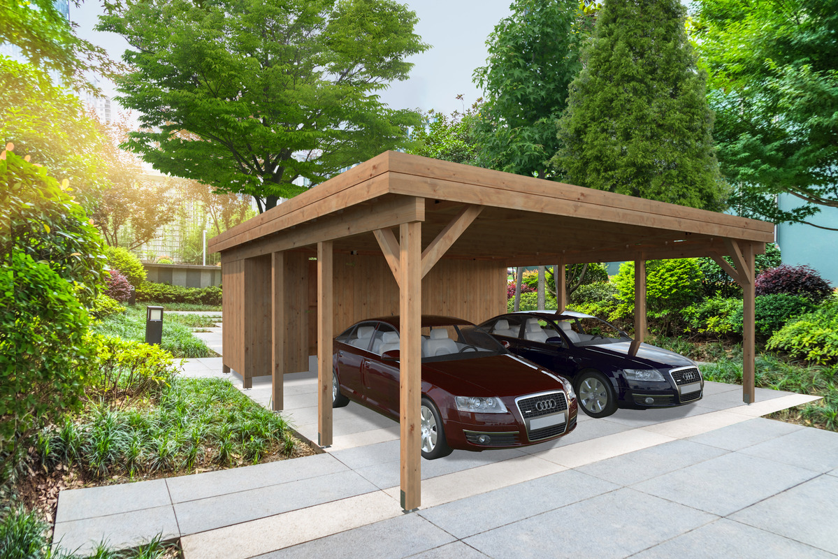 Der optionale Abstellraum bietet zusätzlichen Platz für Gartengeräte oder Fahrräder für den Carpot Karl